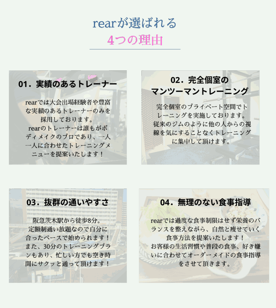 「産後体型がなかなか戻らなかった。また、家事や育児で体力が落ちてしまい「自分の時間を作ってリフレッシュしたい」と思い、通いやすいパーソナルジムを探してrearに」
