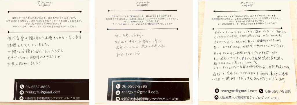 「トレーナーがしっかりとサポートしてくれたおかげで、疑問点なくやく半年続けられました。体重よりも見た目が大きく変化し、日々の疲れの感じることが減った」